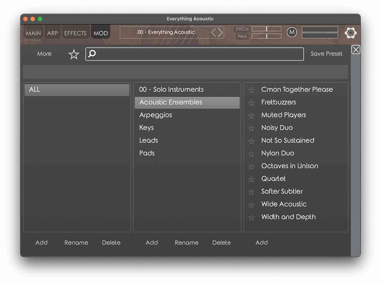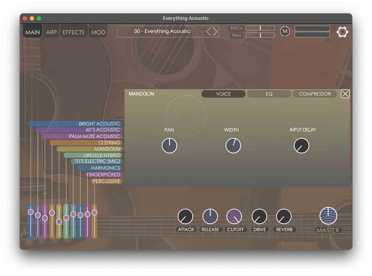 Everything Acousticは、10種類のユニークなアコースティック楽器を束ねて、指板全体に細心の注意を払って録音したものです。