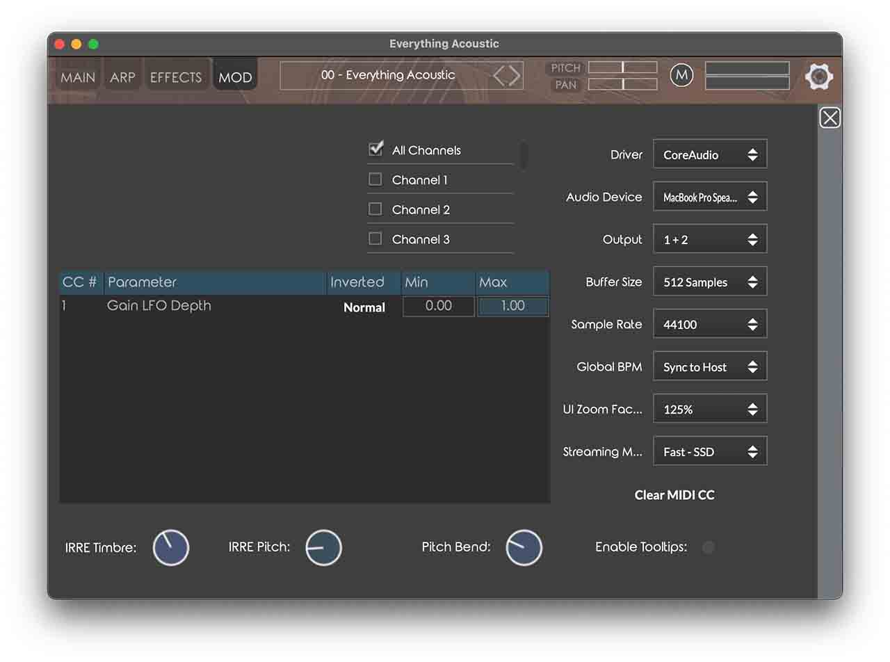 - ホールド、ラッチ、ミディスルーモードを備えた完全にカスタマイズ可能なアルペジエーター