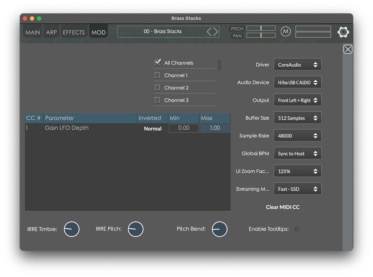 - ホールド、ラッチ、ミディスルーモードを備えた完全にカスタマイズ可能なアルペジエーター