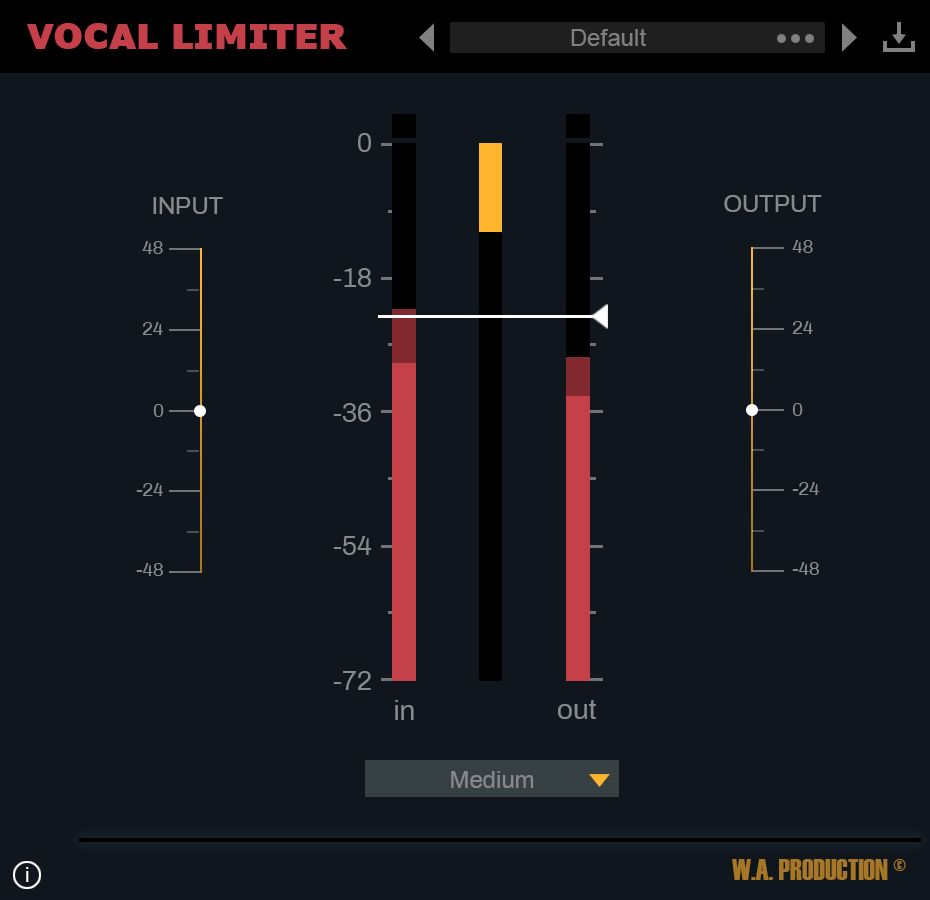 Vocal Limiter は、ボーカル処理チェーンの最後のステップとして、できるだけ簡単に使用できるように設計されました。