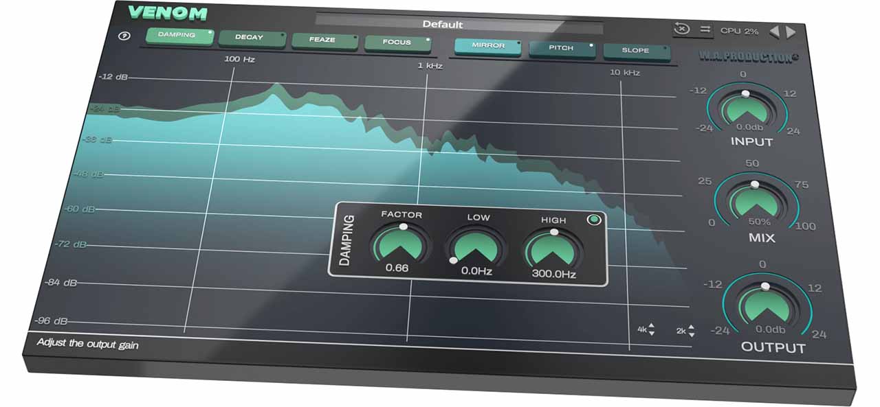 Venom で実験するたびに、拡張リバーブ、ハーモニック エキサイトメント、フリーズしたスペクトル トーン、完全にユニークなアンビエンスなど、音響の驚きが生まれます。