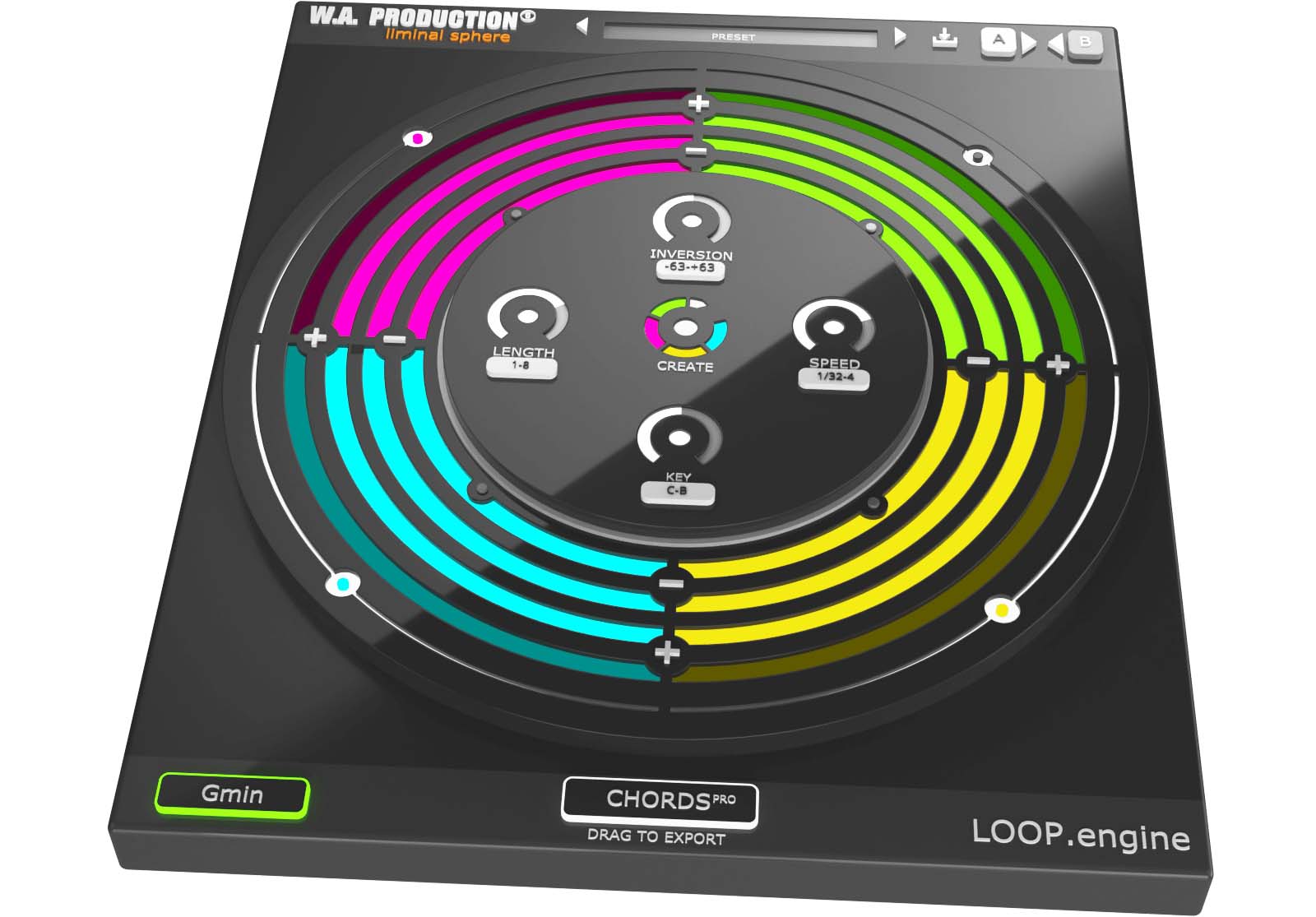 革新的なソフトウェアは、コードの形状、反転、速度などを完全に制御しながら、最大 8 つのコードのループ オプションを生成します。次に、プラグインからプロジェクトに MIDI を直接ドラッグするだけで、CHORDS PRO からの提案に従って、創造力を自由に発揮できます。