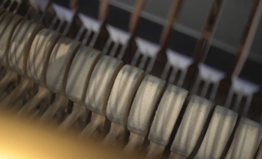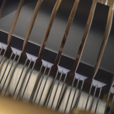 新しいハンマーとダンパーのフェルトの鮮明なディテールは、最もソフトな「サイレント・ストライク」サンプルでも、特にウェッジ・ダンパーを使った音では、驚くほどの勢いとサスティーンで弦を刺激し、全体を通して聴き取ることができます。