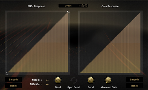 ソフトからハードに音色を変化させるサンプルマッピングに関連するベロシティレベルと、音域全体のボリュームに影響するゲインカーブです。 これは、バーチャル・ピアノが入力されたMIDIデータをどのように解釈し、カーブの設定に基づいて出力する音色と音量を決定するかということです。 私たちの特別なMIDIカスタマイズ・パネルには、音色とボリュームの両方に個別のカーブとコントロールがあり、レスポンスの両方の側面を完全にカスタマイズすることができます。