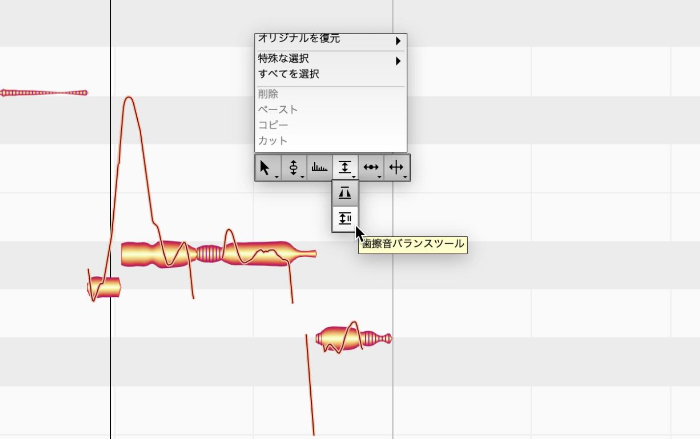 ボーカルの中の歯擦音部分を自動的に検出し、その他の部分とは違う処理を行うことで、ピッチ編集のクオリティを向上