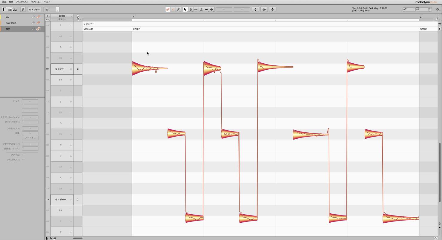 Melodyne 4 以前で編集したプロジェクトを Melodyne 5 で開いた場合、新機能は一旦オフとなり、以前の編集内容を再現。もちろんそこから新機能を活用し編集し直していくことも可能