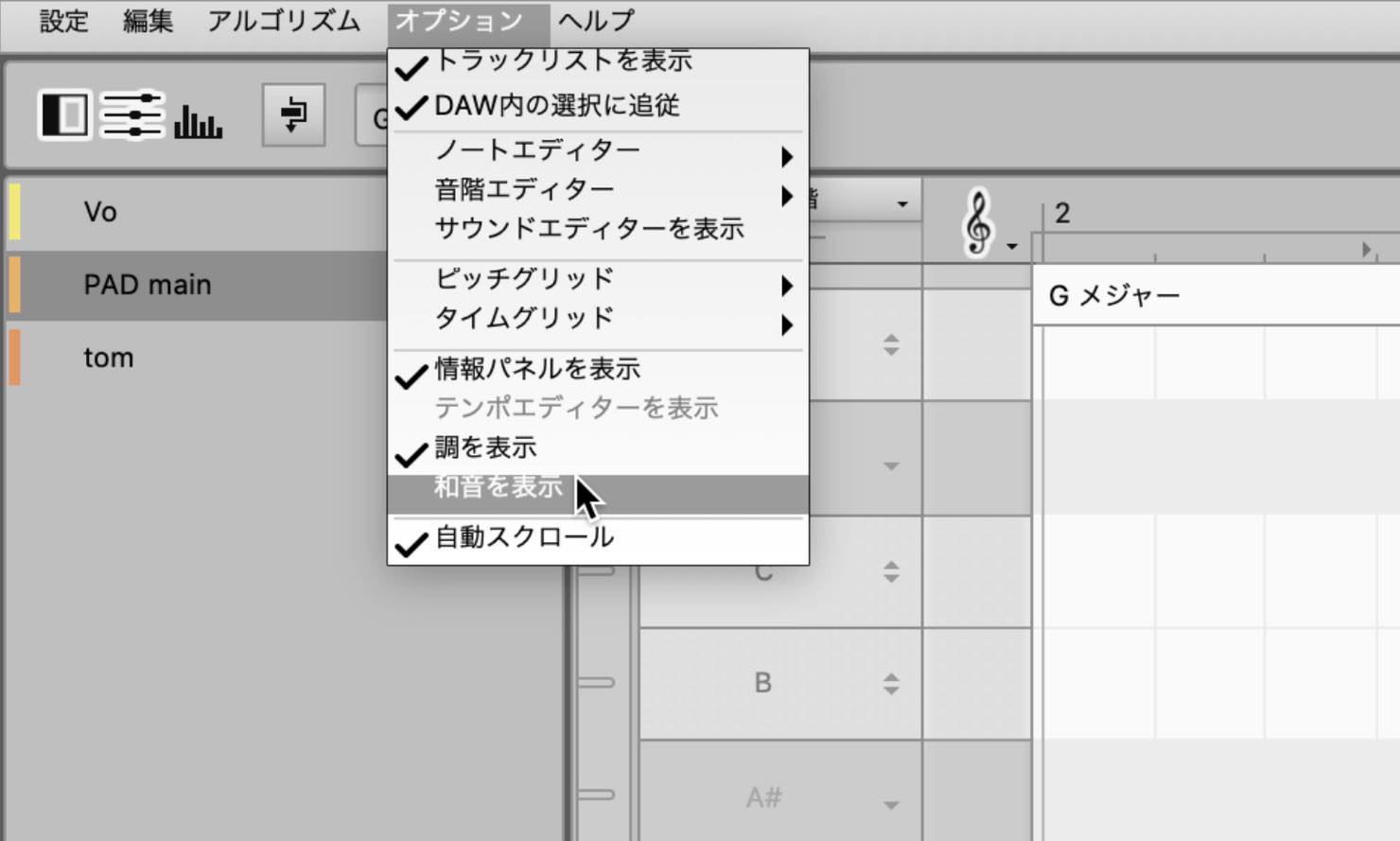 トラックに含まれるノートからコードを検出し、コードトラックに表示可能