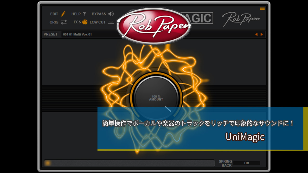 UniMagicのパラメーターはほんの僅かですが、その音質は非常に高く、簡単操作でボーカルや楽器の音をリッチで印象的なサウンドに生まれ変わらせます。