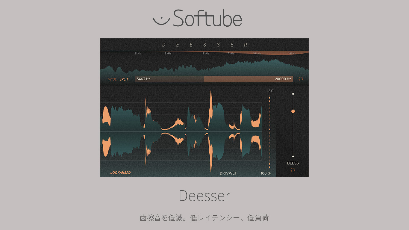 Deesser は、低レイテンシー、低 CPU、使いやすいインターフェイスを特徴としています。