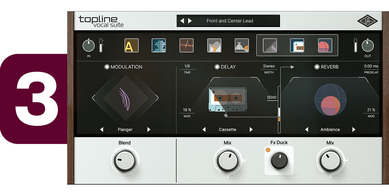 最後に、驚くほどの深みと空間を加える時間ベースのエフェクトでボーカルを高めます。