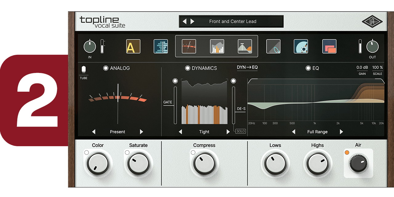 Topline Vocal Suiteは、最新のボーカルチューニングとクラス最高のUADアナログスタジオエフェクトを完璧に融合させた、この種の唯一のプラグインです。