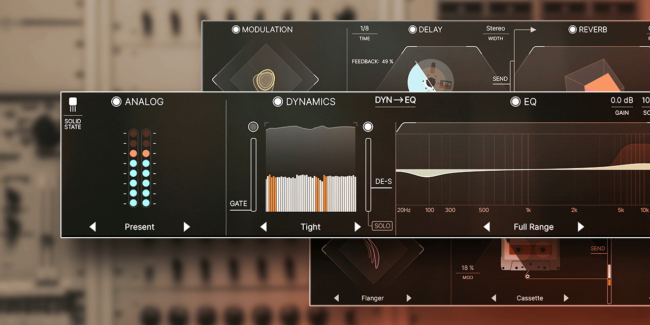 - ビンテージアナログ機器にインスパイアされたUAチャンネルストリップ、コンプレッサー、EQでレコーディングに温かみを追加