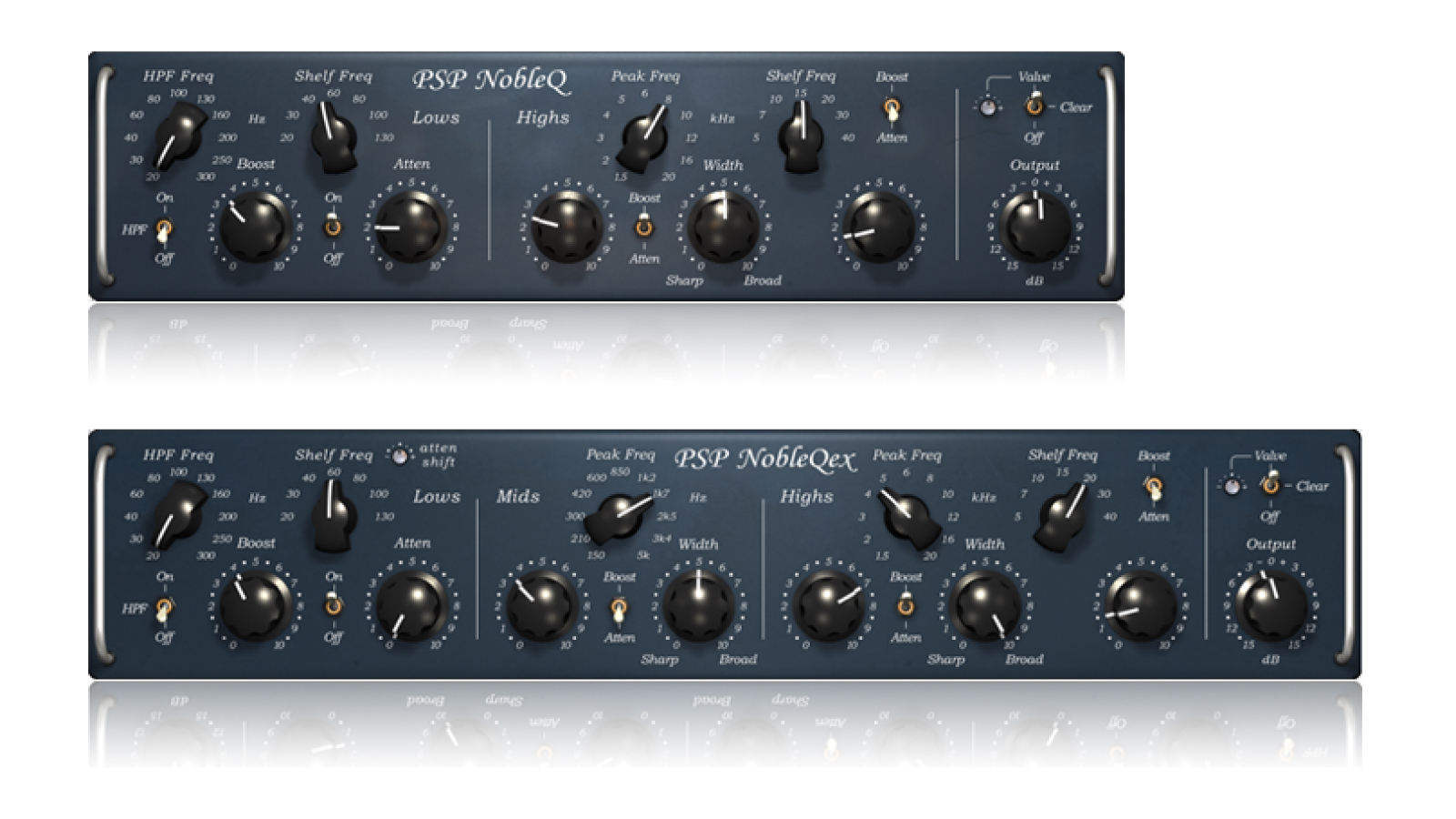 また、同梱のPSP NobleQex は、PSP NobleQ の拡張版です。PSP Nobleのすべての機能以外に、ミドルにベルフィルターと調節可能なローシェルフディップ周波数シフトを追加されています。