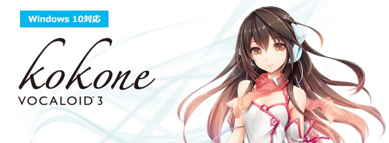 バーチャルボーカリスト「VOCALOID™3 kokone(心響)」は、低音から高音まで広範囲な声域を歌えるVOCALOID™3専用歌声ライブラリです。
