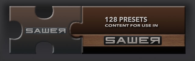 FL スペシャルシンセファミリーの Sawer 用のプリセット、高品質の128もの音色が用意されています。ご使用頂くには登録された(デモ版ではない)Sawer が必要です。