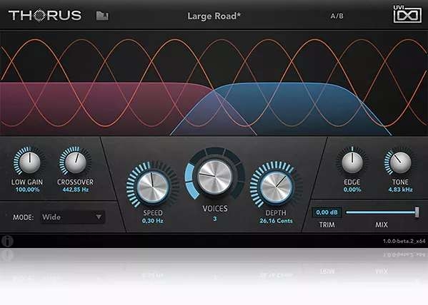 Thorus(トーラス)はUVIの永年の夢であった完璧なコーラスアルゴリズムをベースした次世代のコーラスエフェクトです。最先端技術によるコーラスモデルとSparkverb、Falconの開発から得た経験を融合した結果がThorusです。非常に深いモジュレーション効果と驚異的なクリアさが同居したサウンドが特徴です。そして魅力的で扱いやすい操作画面によって、創作意欲を刺激します。Thorusはクラシックエフェクトを新しいレベルに進化させ、様々なソースにかけたくなる高品位のモジュレーションプラグインです。