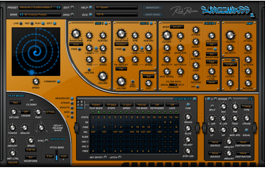 SubBoomBass 2は、重低音サウンドで定評のあった旧バージョンに、新しい波形の追加、Karplus-Strongシンセシスの採用、GUI(グラフィカル・ユーザーインターフェイス)の改良、パラメーターを自在に操るXYパッドなど、新しい機能を搭載し、バージョン2として生まれ変わった、重低音域に特化したソフトウェア・シンセサイザーです。