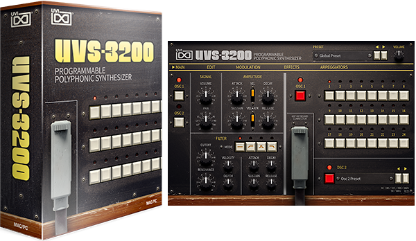 UVS-3200は、シンセ史の中でも非常にレアかつ温かみのあるサウンドをする逸品です。複雑で魅力的な音のするPS-3200を完全整備し、その至福のビンテージアナログサウンドを隅々まで収録しました。70年代後半、わずかな数のみ生産されたこのジャンパンビューティーは48ボイス、セミモジュラータイプの贅沢仕様でした。そしてボイス毎に2つのVCO、そして独立したVCFとLFOが与えられました。さらにPS-3200で最も注目すべき点は(当時、大変素敵な機能である)16プリセットのメモリーリコールを持っていたことです。その設定はフロントパネル、もしくはオプションのリモートコントローラーでいつでも保存と呼び出しが可能でした。このシンセの鍵盤コントローラーもまた特別な装備を持っていました。スケーリング可能なCVジョイスティックは、ダイナミックで趣深い演奏を実現します。