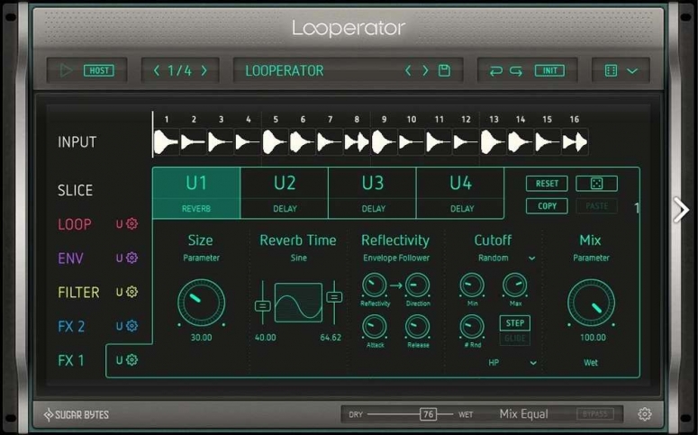 LooperatorはBPMに合わせた各種エフェクトを装備して、シンプルかつグラフィカルな操作でトラックに劇的な変化を与えます。 その表現力豊かな機能性は、もはやエフェクトではなく一つの”楽器”とも言えるでしょう。