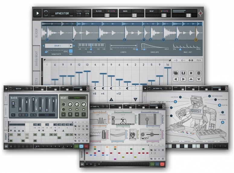 様々なオーディオファイルをロードして、オリジナルのグルーヴとトラックをプレイしながら創り出す! Silcerは、読み込まれたサンプルを最大16個に分割して、シーケンサー上で、リバース、アタック、ディケイ、レベル、ピッチを個別に割り当てます。スライスされたサンプルを組み合わせたリズムトラックを最大16パターンも保有して演奏ができます。 ベースライン・シンセ/シーケンサーを搭載。