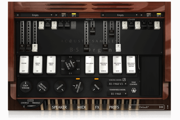 B-5 Organはエレクトリックオルガンの王様であるハモンドの完全再現のチャレンジ成功したオルガン音源です。しかし、ハモンドはモンスター級に複雑な電機楽器で、異なる周波数のトーンジェネレーターを91装備し、それをドローバーで制御して演奏できるように鍵盤1つ1つに結線した構造になっています。サンプリングの持つ本物の質感と響き、モデリングの利点であるリアルで無段階の変化とフィール、そして自由なカスタマイズ性、これまでの弱点ほぼ払拭した究極のオルガン音源で、リリース後も弛まない努力でさらに進化をし続け、これまでのオルガン音源とは一線を画します。