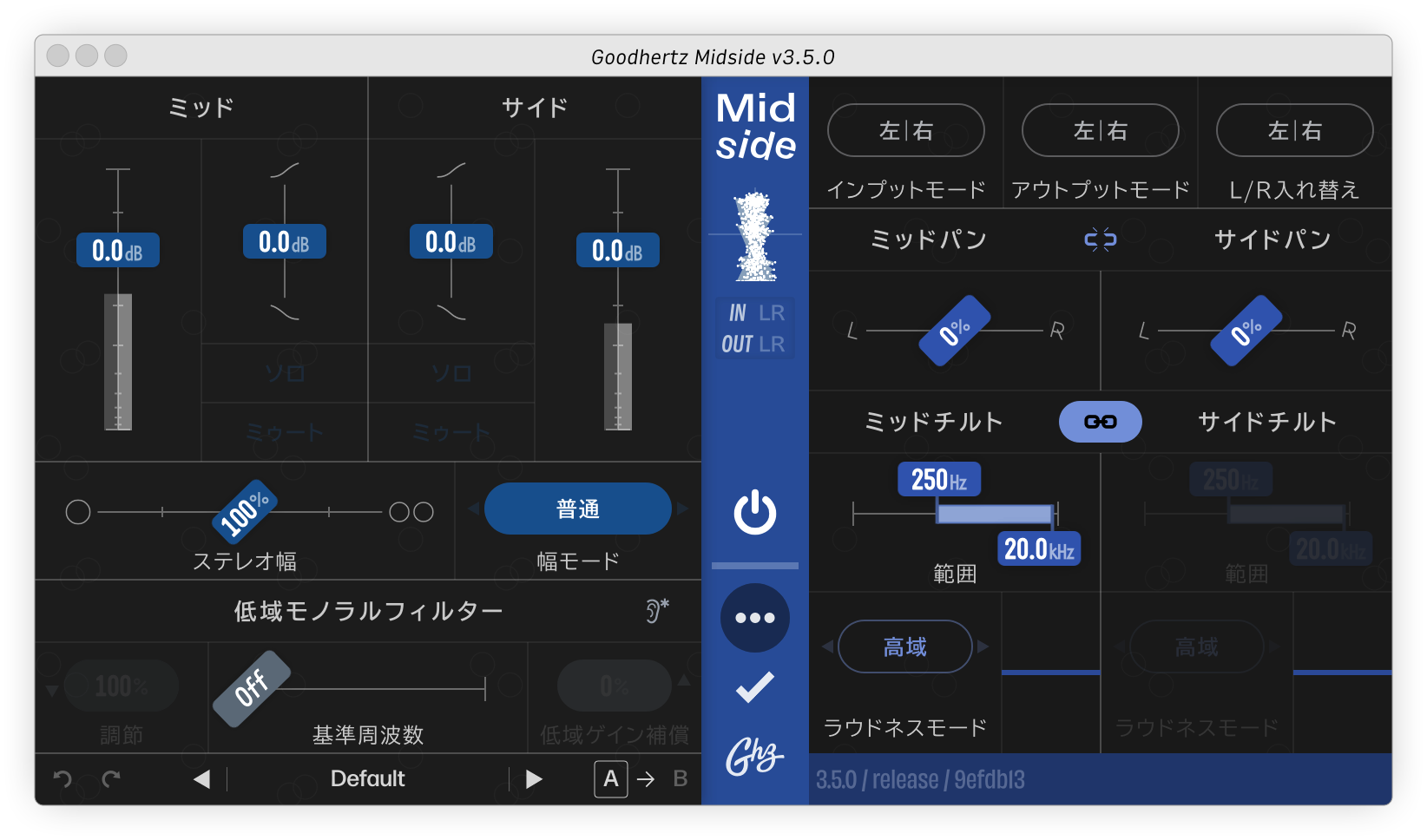 市場には多くのミッド/サイドプラグインがありますが、それらのすべてがシンプルな操作と効果を兼ね備えることはできていません。そこで我々が作り出したのがこのMidside GHZ-0013です。