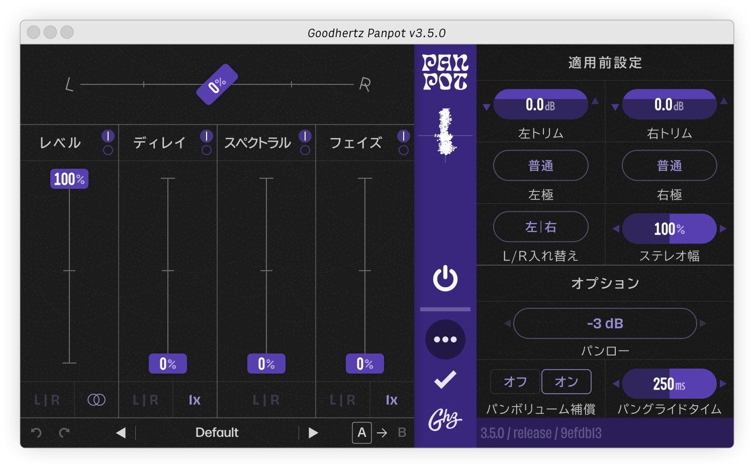 従来からある、いわゆるレベルパンを現代的にしたバージョンで、Panpotのレベルパンは、オートメーションがより優れ、さらにいくつかのパンの方式が含まれています。
