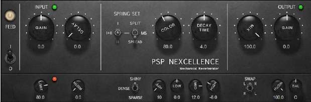 PSP Nexcellence は、「ネックレスタイプ(スプリングがネックレスのようにぶら下がった状態のスプリングリバーブ)」のリバーブユニットにインスパイアされてモデリングした、豊かなサウンドのスプリングリバーブのプラグインです。PSP Nexcellence は、2 つの異なるスプリングで構成されたプロセッサを使い、片方、または両方を同時に使うことができます。このアルゴリズムにより、スプリングリバーブ独特のサウンドを生み出すための便利なパラメーターを装備することで、オリジナルのハードウェアよりも使いやすくなっています。