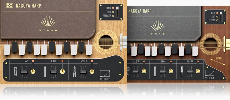 複数の奏法スタイルが用意されています。詳細で精密に収録されたサンプルと先進的なパフォーマンススクリプトによって、弦を弾いた際の動きや倍音作用を忠実に再現します。そして、伝統的なピック弾きに加え、弓、スティック、パームミュート、ハンマーオンとプリングオフを扱うことが可能です。そして複数のウナコルダ構成とチューニングで自然で表情豊かなメロディやリズミックアルペジオから原始的でモジュレーションの効いたハーモニックドローンまで幅広い音色と響きを可能にします。サンプル一つ一つは、Royer SF-24、Neumann U67とBruel & Kjaer 4006のマルチマイクで収録され、個々にレベル調節できますので、どんなミックスにも対応できる柔軟さも持ち合わせます。