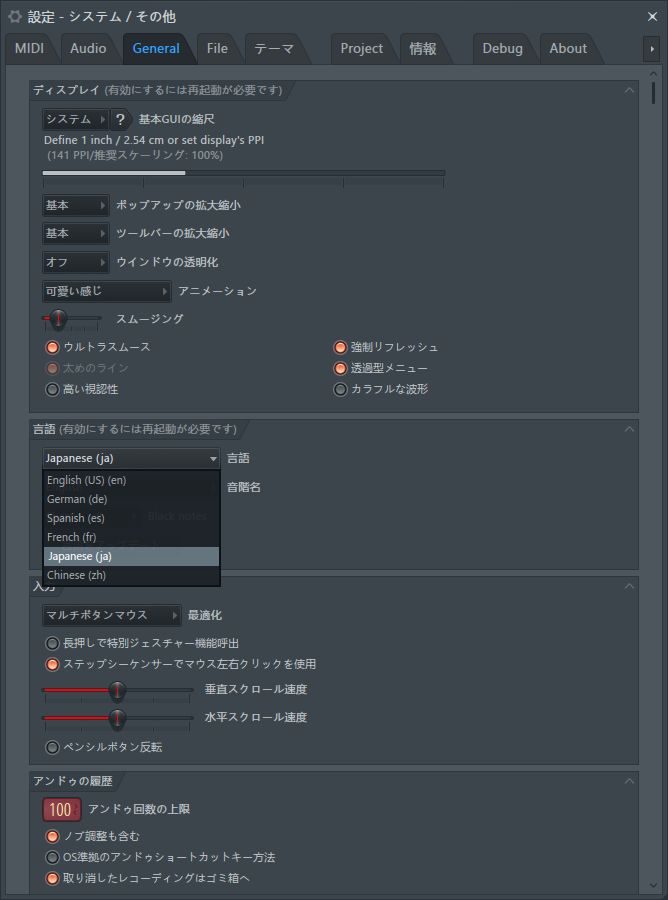 ・「Put undone recordings in the recycle bin'(元に戻した録音をごみ箱に入れる)」 - デフォルトでオンになっています。オフのときには、アンドゥするとすぐに削除されます。