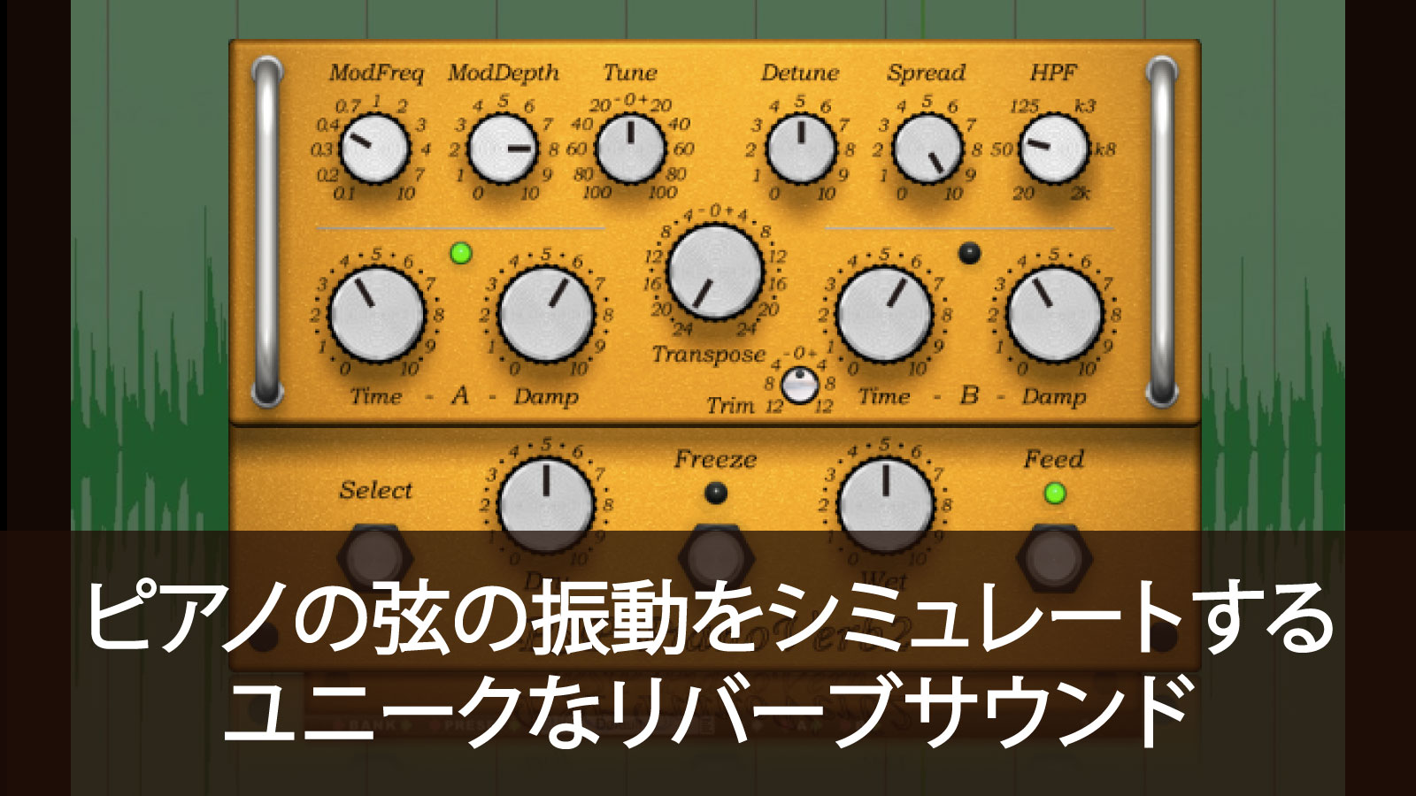 ピアノの弦の振動をシミュレートするユニークなリバーブサウンド