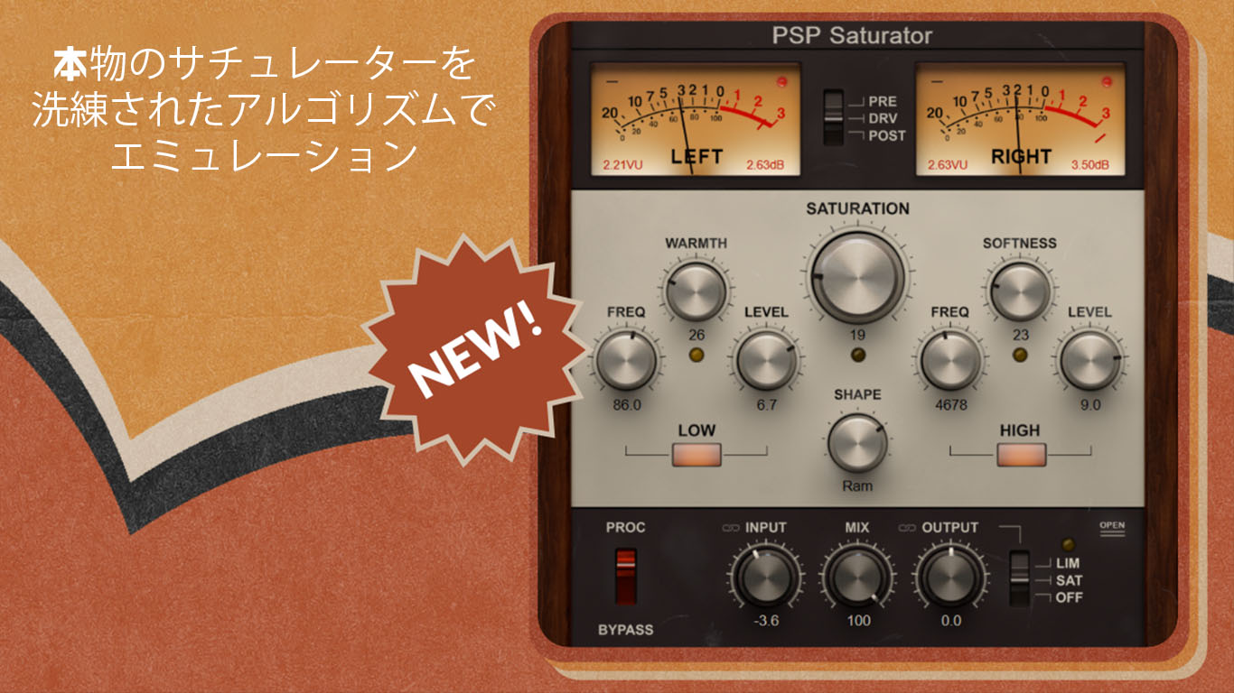 日本語マニュアル付属 本物のサチュレーターを洗練されたアルゴリズムでエミュレートできるプラグイン