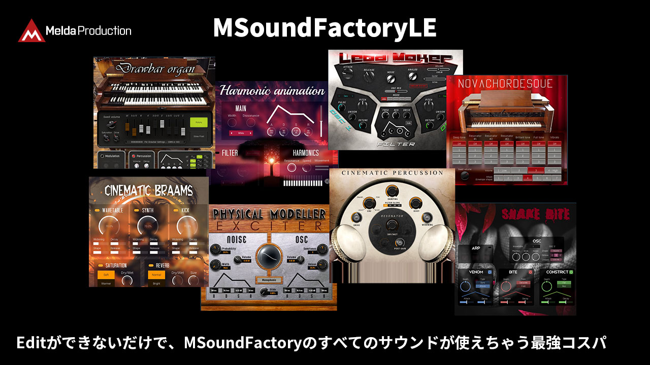 さらなる究極のコスパ Editができないだけで、MSoundFactoryのすべてのサウンドが付属!